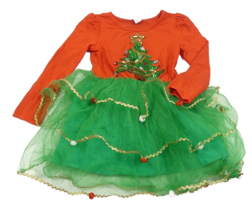 Červeno-zelené bavlněno/tylové šaty s vánočním stromkem