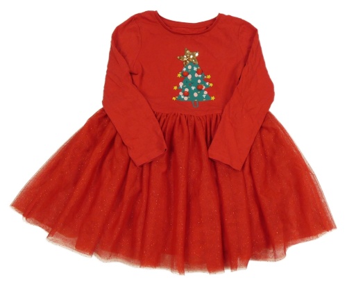 Červené bavlněné šaty s tylovou sukní a stromečkem Tu