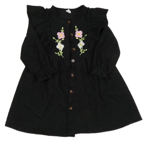 Černé žebrované propínací šaty s výšivkami květů a volánky Shein