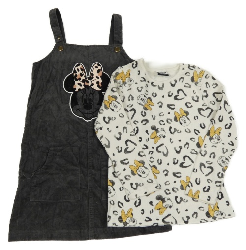 • 2 set - tmavošedé manšestrové laclové šaty s Minnie + bílo-šedé vzorované žebrované triko George