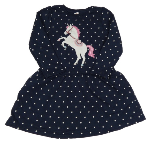 Tmavomodré puntíkaté teplákové šaty s jednorožcem s flitry Topolino