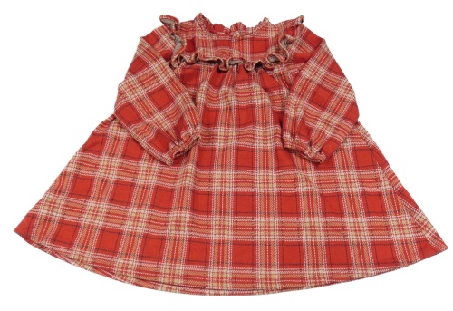 Červeno-béžovo-černo-bílé kostkované úpletové šaty s volánky Next