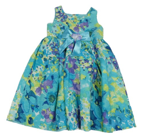 Modro-zeleno-fialové vzorované šaty s mašlí