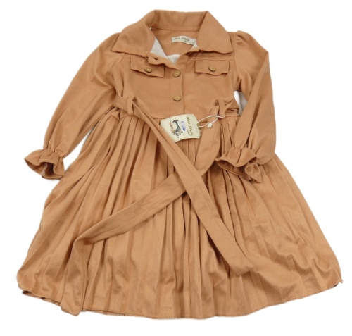 Nové - karamelové plisované šaty s volánky a límečkem a páskem