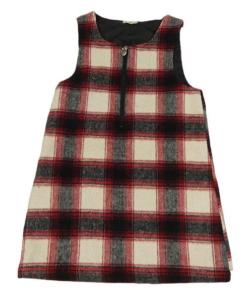 Smetanovo-černo-červené kostkované vlněné šaty F&F