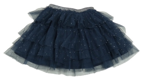 Tmavomodrá puntíkatá vrstvená tylová sukně se stříbrným pasem little kids