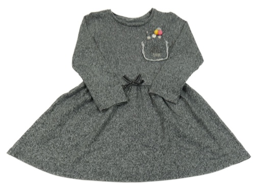 Tmavošedé melírované teplákové šaty s kapsou a bambulemi