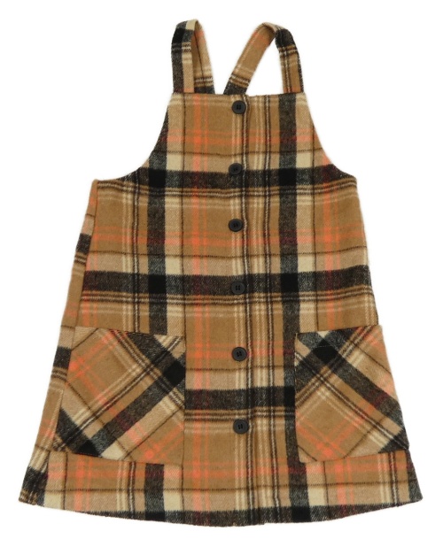 Béžovo-černo-korálové kostkované vlněné šaty Dunnes Stores