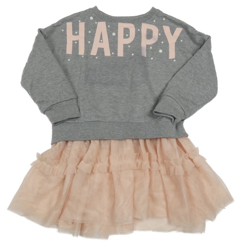 Šedo-broskvové teplákovo/tylové šaty s nápisem a pecičkami a kanýrkem Tu