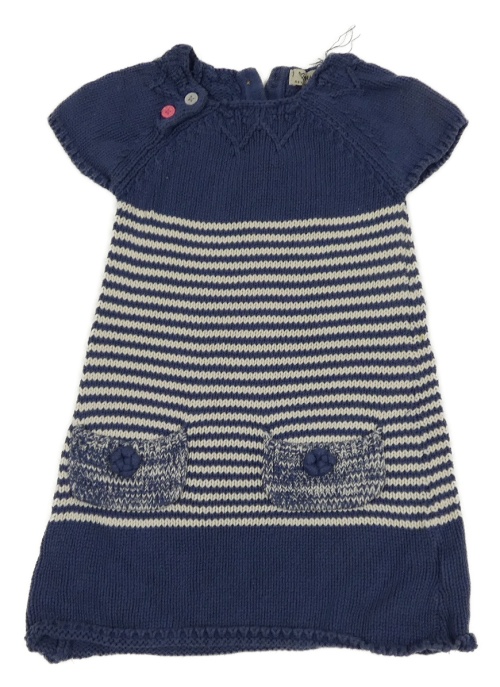 Tmavomodro-bílé pruhované pletené šaty s kapsami Next