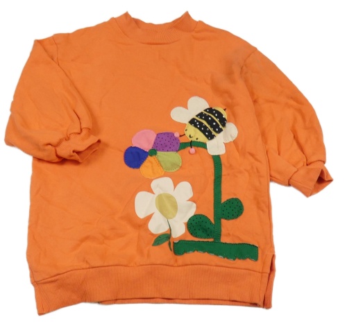 Oranžové teplákové oversize šaty s kytičkami a včelkou Next