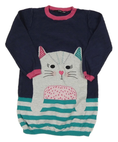 Tmavomodro-modrozeleno-světlešedo-tmavorůžové pletené šaty s kočičkou George