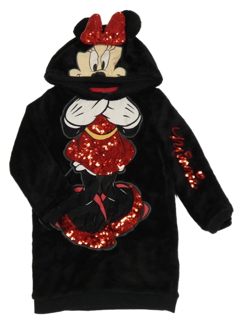 Černé plyšové šaty s Minnie s flitry a kapucí Disney