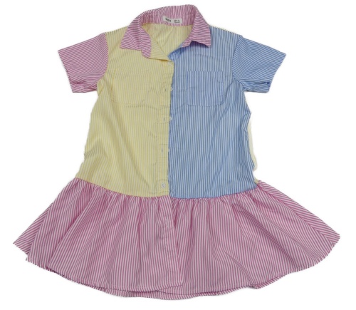 Bílo-růžovo-barevné pruhované košilové šaty Shein
