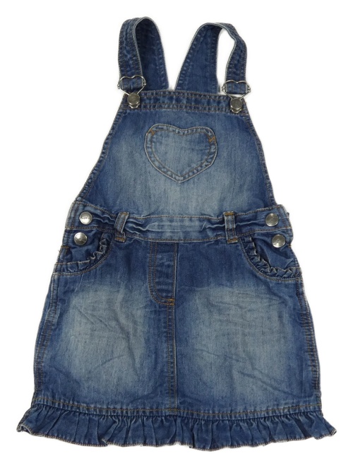 Modré riflové laclové šaty s volánky a srdcem Topolino