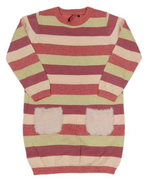 Růžovo-béžovo-vínové pruhované třpytivé svetrové šaty s chlupatými kapsami George