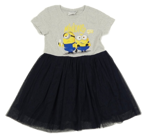 Šedo-tmavomodré bavlněno/tylové šaty s Mimoni