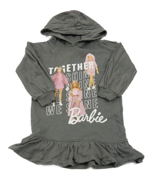Šedé teplákové šaty s Barbie a kapucí