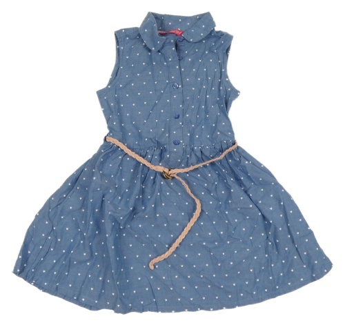 Modré lehké šaty se srdíčky a páskem