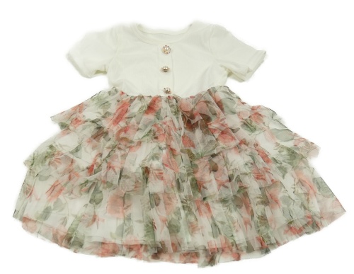 Bílo-zeleno-růžové žebrované šaty s květovanou vrstvenou tylovou sukní