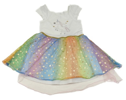 Bílo-duhové šaty s jednorožcem a tylovou sukní C&A