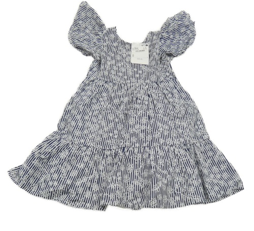 Nové - Tmavomodro-bílé pruhované plátěné šaty s kytičkami Mayoral