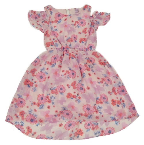 Světlerůžové šifonové šaty s květy a volnými rameny Dopodopo
