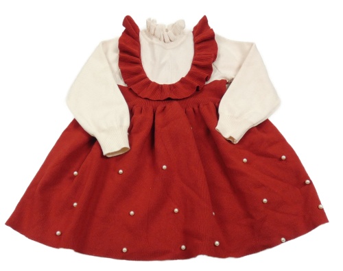 Červeno-pudrové úpletové šaty s perlami