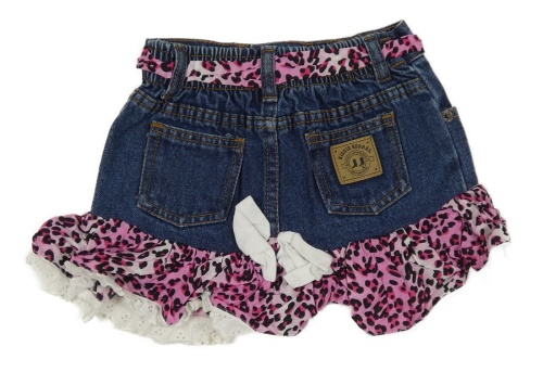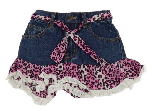 Nové - modrá riflová sukně s růžovými volánky a páskem