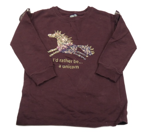 Vínové teplákové šaty s jednorožcem z flitrů Next