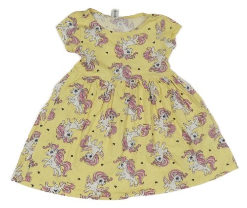 Světležluté šaty s jednorožci a srdíčky dopodopo