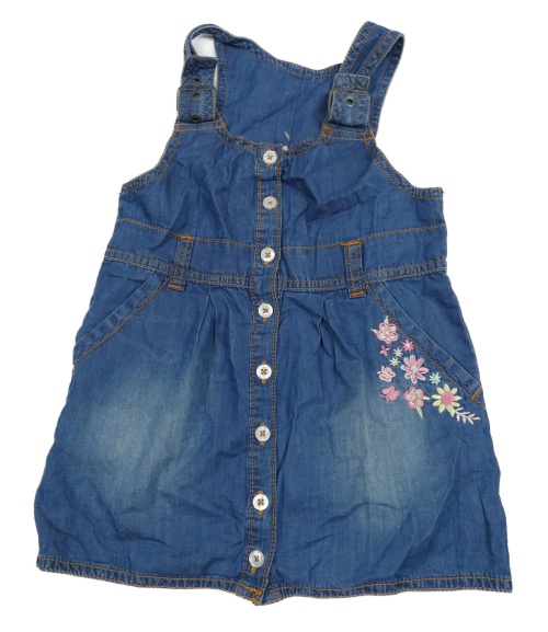 Modré lehké riflové propínací šaty s kytičkami a motýlky Kiki&Koko
