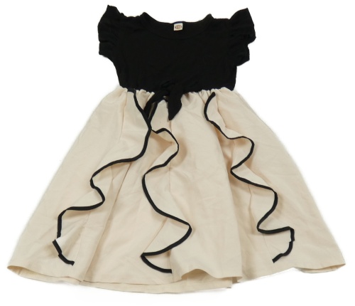 Světlepudrovo-černé šaty s volánky a mašlí a žebrováním