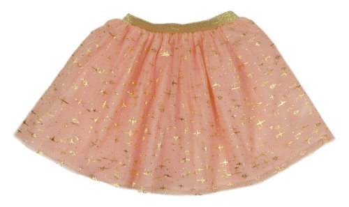 Broskvová tylová sukně se zlatým vzorem a pasem