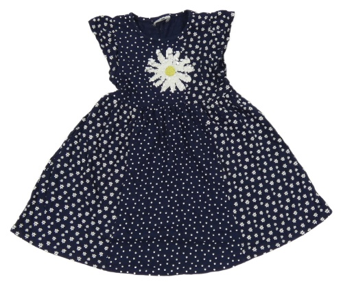 Tmavomodro-bílé puntíkaté květované šaty s květem z flitrů Topolino