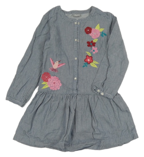 Tmavomodro-bílé pruhované šaty s květy