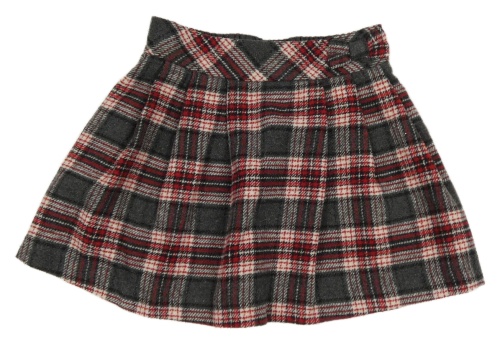 Šedo-červeno-smetanovo-černá kostkovaná vlněná sukně s mašlí Tu