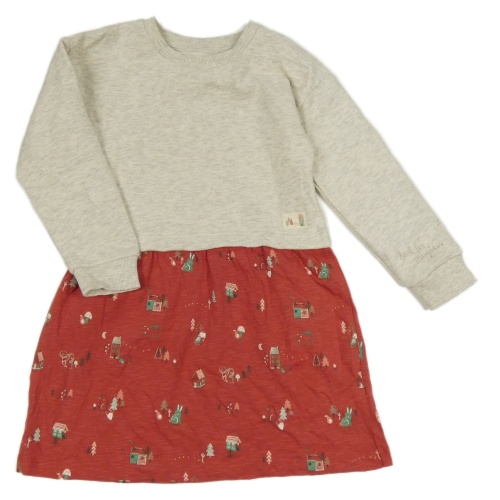 Světlešedo-rezavé teplákovo/bavlněné šaty se zvířátky a stromečky a domečky Nutmeg