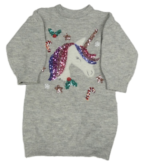 Šedé melírované svetrové šaty s jednorožcem s flitry Tu
