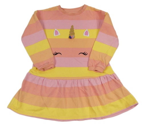 Růžovo-žluté pruhované teplákové šaty s jednorožcem F&F
