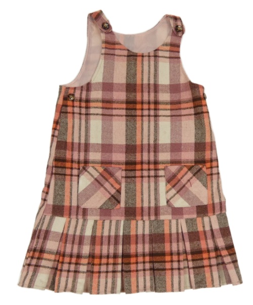 Růžovo-smetanovo-hnědé kostkované vlněné laclové šaty Matalan