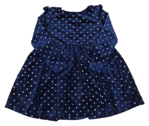 Tmavomodré plyšové šaty s hvězdami a volánky