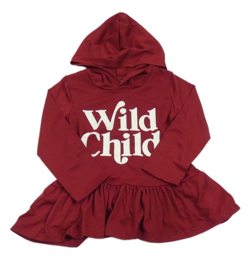 Vínová šatová tunika s nápisem a kapucí