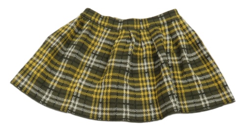 Khaki-bílo-žlutá kostkovaná úpletová sukně