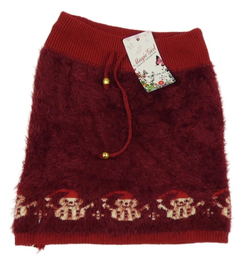Nové - vínová chlupatá pletená sukně se sněhuláky