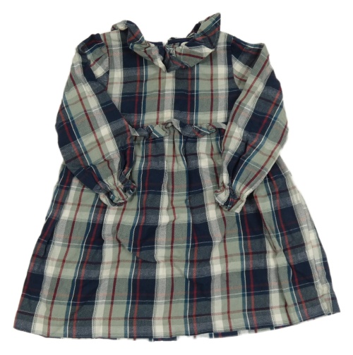 Zelenošedo-tmavomodro-vínové kostkované šaty s límečkem