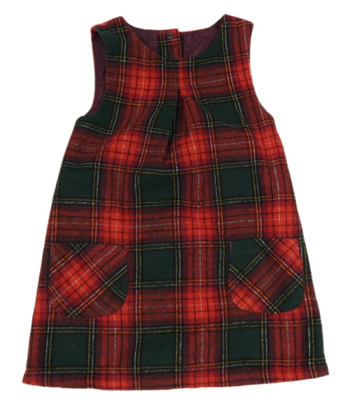 Červeno-zeleno-černé kostkované vlněné šaty Nutmeg