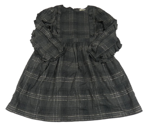Tmavošedé kostkované šaty s volánkem