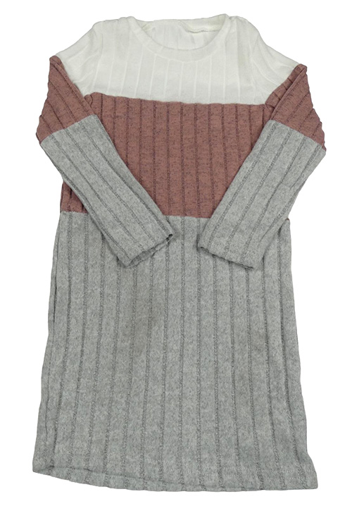 Bílo-starorůžovo-šedé žebrované úpletové šaty Shein