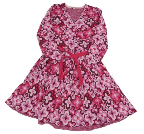 Růžovo-fuchsiovo-vínové květované svetrové šaty s páskem
